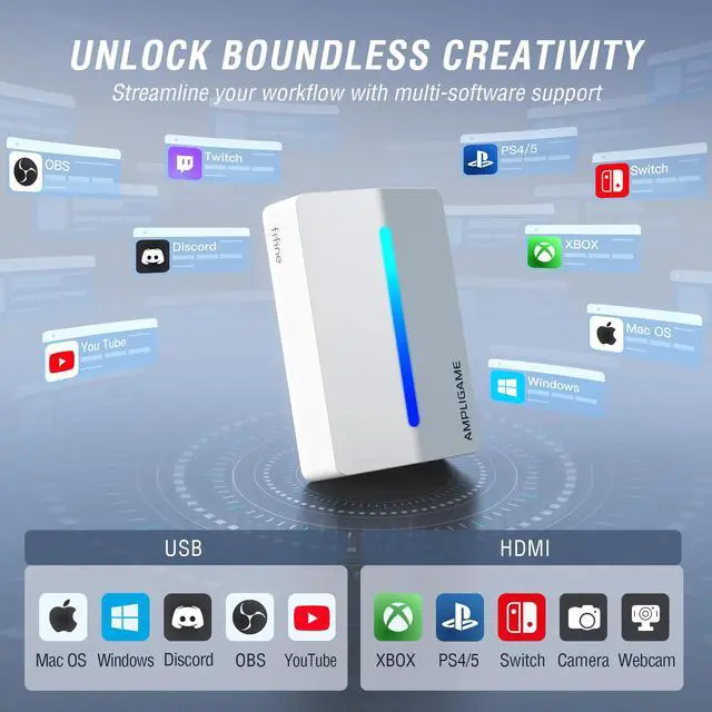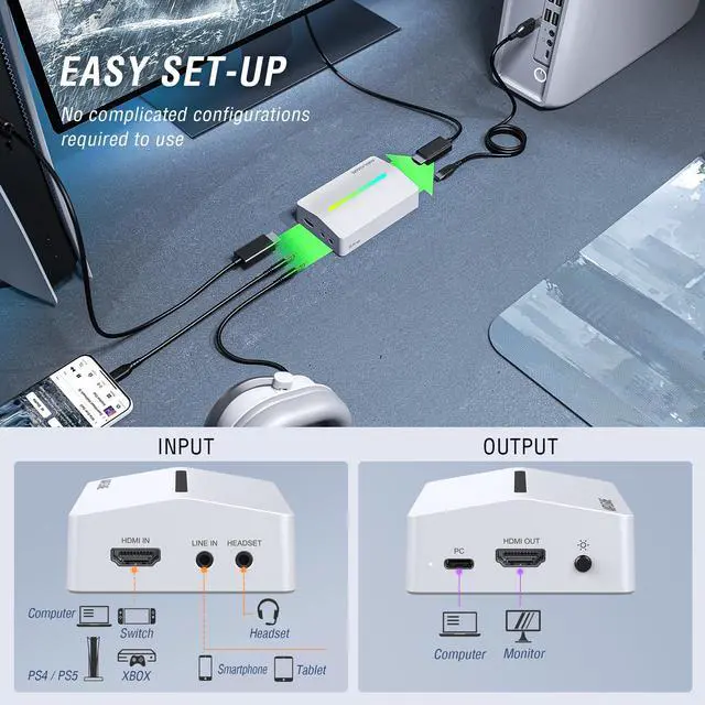 [Plug & Play Simplicity] The video capture device white makes you forget complex setups and boasts a straightforward design that allows for easy, intuitive connections. The game capture card compatible with computer, PS4/PS5, switch or