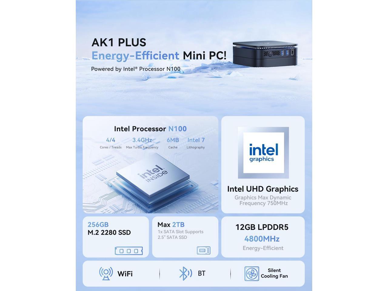 - [Small but Powerful]-KAMRUI AK1 PRO N100 Mini PC desktop about 5.04 x 5.04 x 2.05-Inch. Powered by12th Intel Alder Lake- N100 (max up to 3.4GHz, 4C/4T, 6MB L3 Cache), delivers incredible responsiveness and smooth than Intel Celeron J4125, N5095 and Celeron N5100 processor. Easily switch back and forth between more applications with 12GB DDR5 memory and 256GB M.2 2280 solid-state drive storage. Very fast and no lagging or jumping.