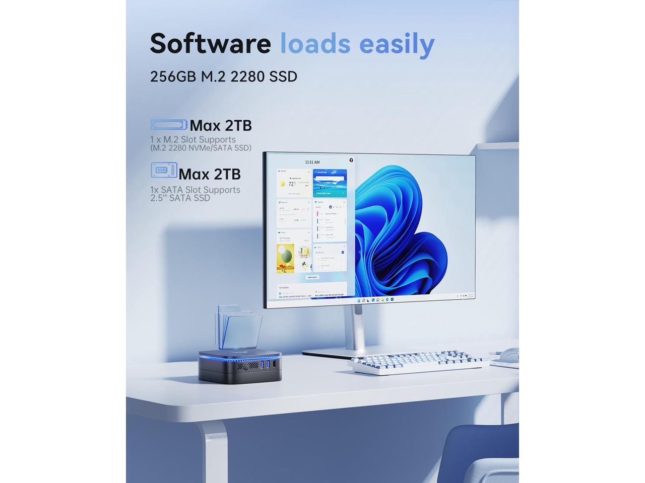 - [Intelligent Design]-What makes the small computer desktop stand out from other mini PCs is that it has an empty expansion bay to allow adding a 2.5-inch SSD or HDD (up to 2TB). Comes with two HDMI ports connecting dual monitors easily, simplify and double your work efficiency. Also, the VESA mount can free yourself from the messy desktop. It is convenient to hide the mini desktop PC on the back of the monitor or HDTV.
