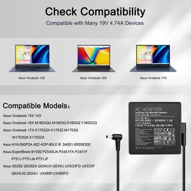 90W 4.74A Laptop Charger Power Supply for Asus Vivobook 14X 15X 16X 17X series laptops: