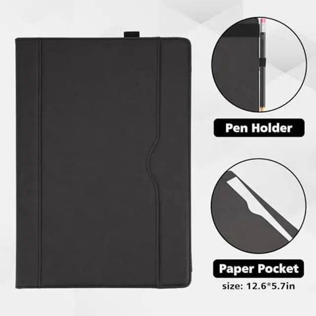 TYTX Compatible with MacBook Air 13 Inch Case, for Older Version 2010-2017 Release A1369 A1466, PU Leather Laptop Case with Pocket for Papers and Pen Holder, Black