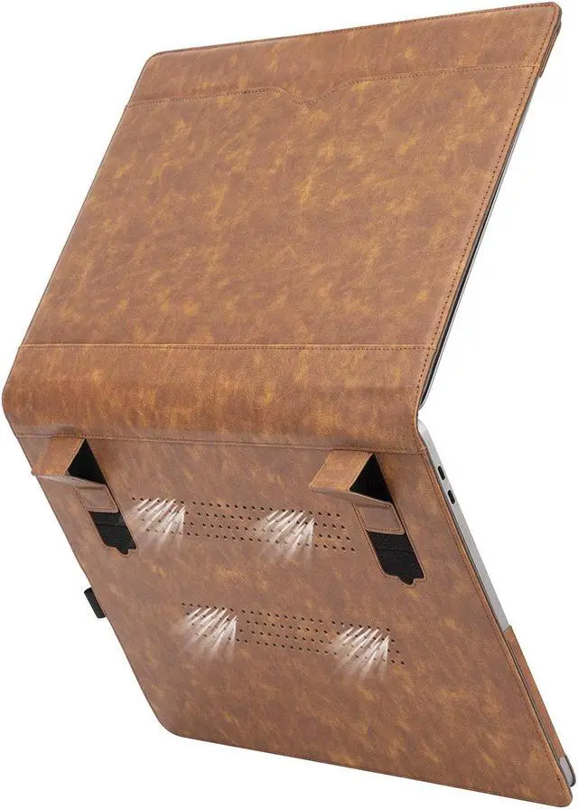 TYTX Laptop Case for MacBook Pro 16 Inch Leather Case 2024 2023 2022 2021 M4 A3403 A3186 M3 A2991 M2 A2780 M1 A2485 Protective Folio Book Cover with Vents and Stand Function, Brown