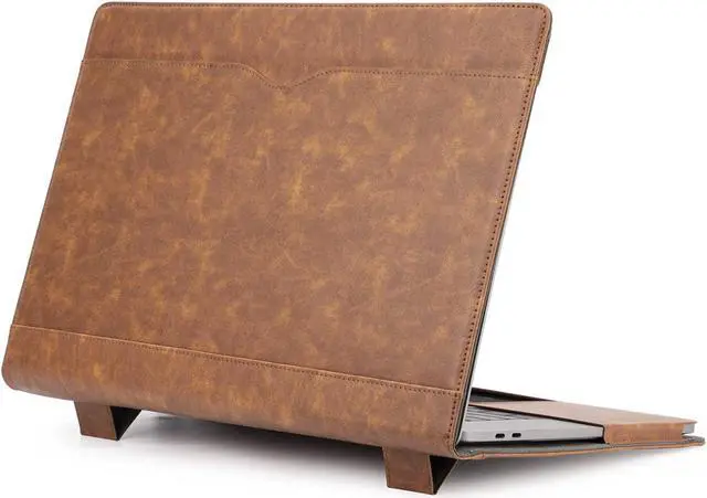 TYTX Compatible with MacBook Pro Leather Case 15 Inch 2016-2019 Release (A1990 A1707) Laptop Sleeve Protective Folio Book Cover with Vents, Brown