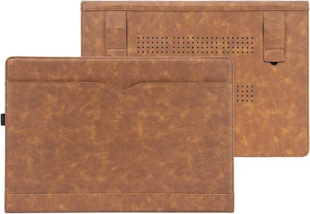 The case allows for access to all ports and is made of high-quality PU leather and soft microfiber, which provide good ventilation and protect the laptop from overheating. It offers full wraparound protection and superior durability, with shock-absorbing features that protect your laptop from scrapes and scratches.