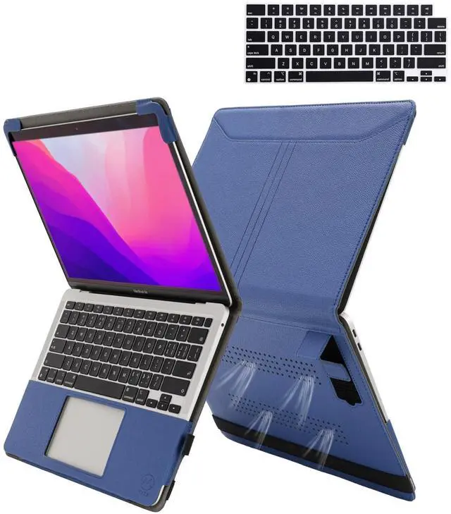 Fits model numbers: A2442, A2779, A2992, A2918, A3401, A3185, A3112, A3434. Please verify the "Axxxx" model number on the back of your MacBook before ordering to ensure perfect fit ^^ [Adjustable Stand & Ventilation] Built-in adjustable foldable stand elevates your laptop to a ergonomic viewing angle, reducing neck and wrist strain for a more comfortable work/study experience. Bottom ventilation grilles promote air circulation, effectively dissipating heat and preventing overheatingideal for long hours of use ^^ [Full-Body Shockproof Protection] Crafted from premium PU leather (water-resistant & scratch-resistant) and lined with soft microfiber (anti-scuff & lint-free), this case delivers 360 wraparound protection. Reinforced anti-bump buffer edges add crashproof and shockproof defense, safeguarding your MacBook from accidental drops, scrapes, and daily wear and tear ^^ [Storage & Portability] Functional storage design includes a dedicated pocket for documents, notes, or thin chargers, plus a handy pen holder to keep your stylus/pen within reach. Sleek, lightweight, and stylishthis case is perfect for commuting, school, business trips, or travel, seamlessly blending practicality and fashion ^^ [Secure Elastic Strap Closure] Elastic closure strap ensures your laptop stays tightly sealed and secure when stored in a backpack or tote bag.
