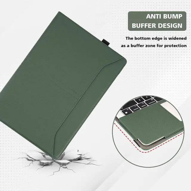 Fits model numbers: A2442, A2779, A2992, A2918, A3401, A3185, A3112, A3434. Please verify the "Axxxx" model number on the back of your MacBook before ordering to ensure perfect fit ^^ [Adjustable Stand & Ventilation] Built-in adjustable foldable stand elevates your laptop to a ergonomic viewing angle, reducing neck and wrist strain for a more comfortable work/study experience. Bottom ventilation grilles promote air circulation, effectively dissipating heat and preventing overheatingideal for long hours of use ^^ [Full-Body Shockproof Protection] Crafted from premium PU leather (water-resistant & scratch-resistant) and lined with soft microfiber (anti-scuff & lint-free), this case delivers 360 wraparound protection. Reinforced anti-bump buffer edges add crashproof and shockproof defense, safeguarding your MacBook from accidental drops, scrapes, and daily wear and tear ^^ [Storage & Portability] Functional storage design includes a dedicated pocket for documents, notes, or thin chargers, plus a handy pen holder to keep your stylus/pen within reach. Sleek, lightweight, and stylishthis case is perfect for commuting, school, business trips, or travel, seamlessly blending practicality and fashion ^^ [Secure Elastic Strap Closure] Elastic closure strap ensures your laptop stays tightly sealed and secure when stored in a backpack or tote bag.