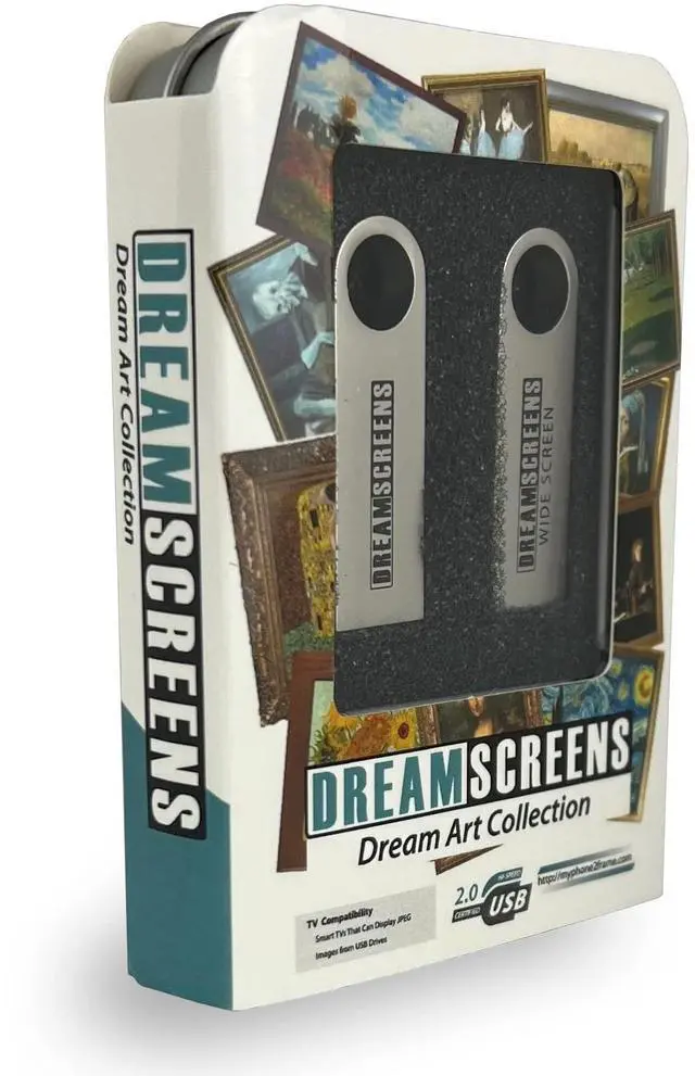 Dreamscreens: Dream Art Collection. Featuring over 500 of the most breathtaking paintings in history, Dreamscreens brings timeless masterpieces into your home like never before. ^^ The Perfect Gift for Art Lovers A thoughtful and timeless present thats sure to delight. Whether for someone special or yourself, Dreamscreens brings the beauty of art into any space. ^^ Simple Plug-and-Play Setup Just plug it into your TVs USB port to instantly display stunning Ultra High-Definition images. Choose between a slideshow of over 500 breathtaking paintings or a video with soothing background music. ^^ Includes Two