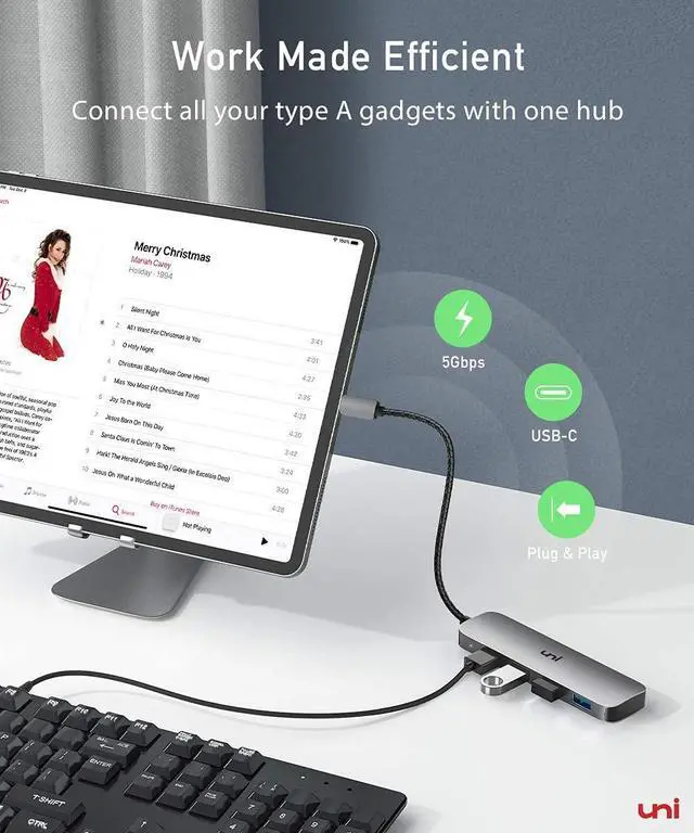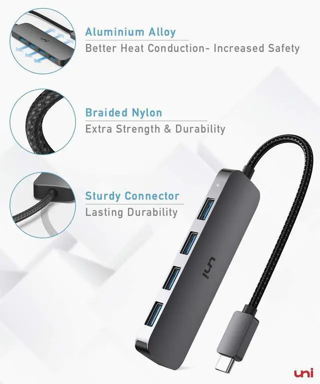 [(Wide Compatibility)] uni USB C Hub with 4 Ports Compatible with MacBook Pro 2021/2020/2019/2018/2017, MacBook 2018/2017/2016/2015, iPad Pro 2021/2020/2018, Pixelbook, Galaxy Book, Pixelbook, Dell XPS 17/15 / 13, Surface Book 2, Samsung Galaxy S21/S20/S10 and many other