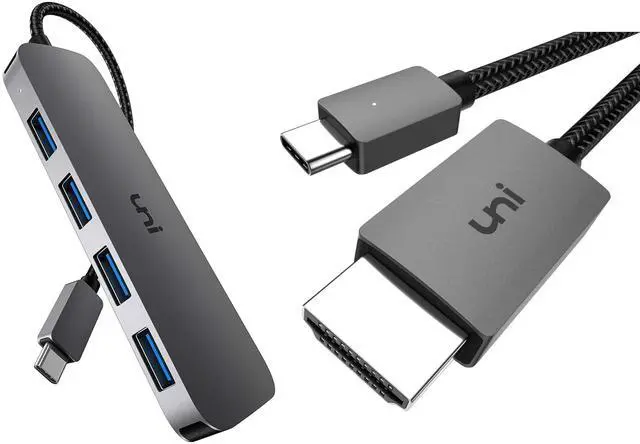 Bundle uni 4K@30Hz USB C to HDMI Cable + USB C to USB Hub 4 Ports