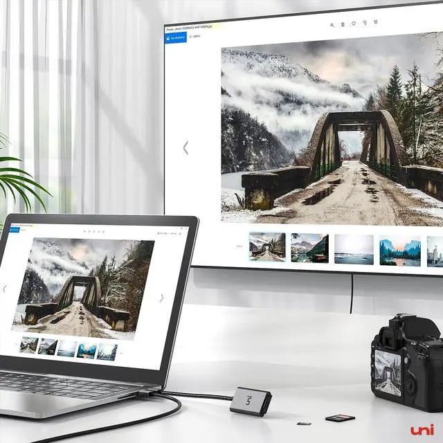 Super Speed Data TransferUSB 3.0 SD card reader brings you 5Gbps quick and reliable data transfer speed between computer and your memory cards, 10x faster than USB 2.0. An HD movie or large file can be transferred in a few seconds by uni Micro SD card adapter. ^^ Read & Write SimultaneouslyTwo memory cards can be written & read at the same time with uni USB SD Card Reader for camera. Transfer your data from one to another with ease. Plug and play without extra drive or software.