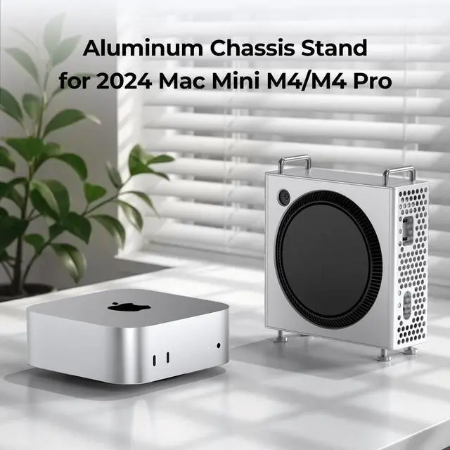 Mac mini M4 Stand - Aluminum Chassis Vertical Mount for M4 & M4 Pro (2024) - Optimized Heat Dissipation - Mac mini M4 Case Holder - Accessories for Mac mini M4