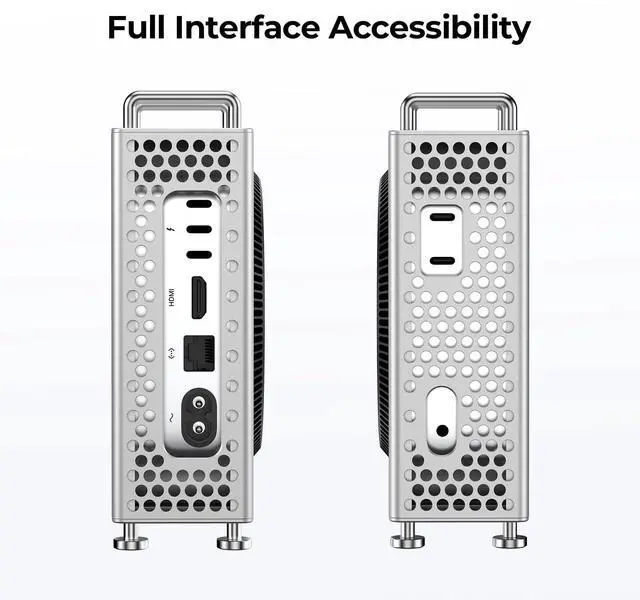 Excellent Heat Dissipation PerformanceFeaturing an optimized thermal design, the case elevates the air intake and exhaust vents of the Mac Mini M4 to the sides, increasing airflow contact area and accelerating circulation. The high thermal conductivity of its aluminum alloy further enhances heat dissipation efficiency.
