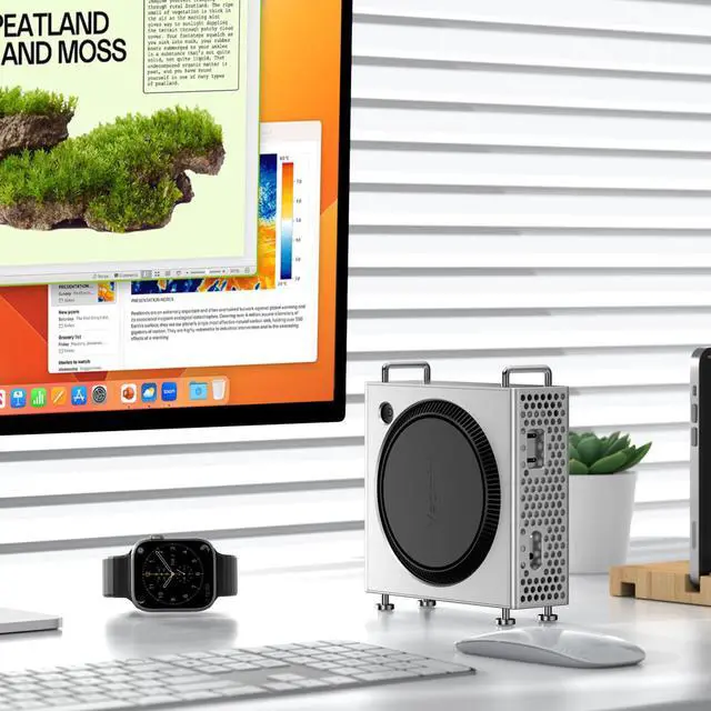 Elegant Aluminum Alloy DesignMade of high-quality CNC-machined aluminum alloy, this case transforms your Mac Mini M4 into a desktop decoration similar to the appearance of the Mac Pro case. It enhances the modern look while providing excellent durability.