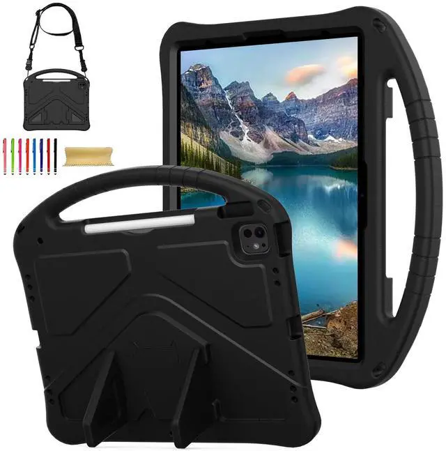 Allytechgroup Kids Case for Apple iPad Air 13 M3 M2 2025 2024/ iPad Pro 13 M4 2024/ Pro 12.9" 2022/2021/2020/2018, EVA Shockproof Handle Kickstand Lightweight Back Cover with Shoulder Strap, Black