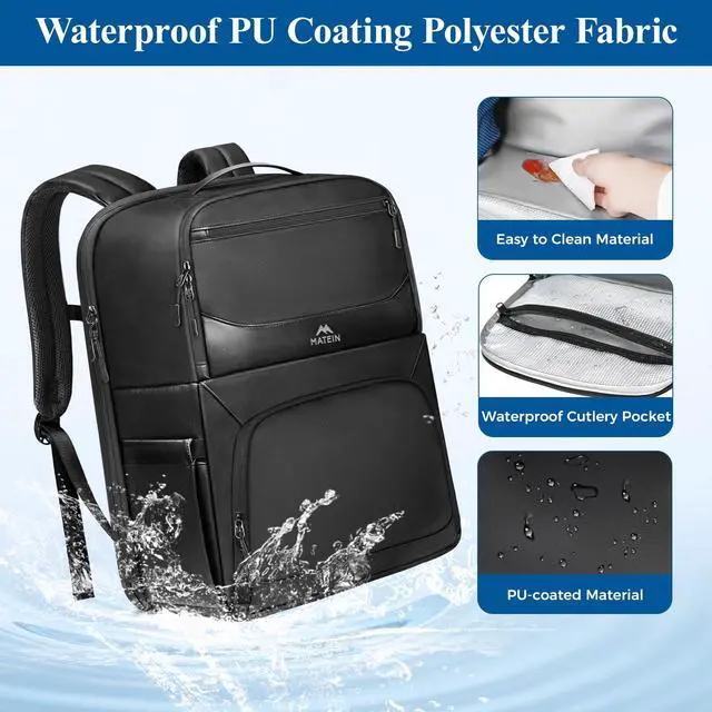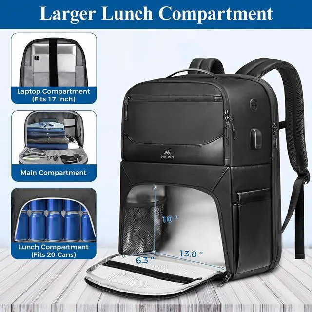 MATEIN Lunch Backpack for Men Work, Large 17 Inch Laptop Back Pack with USB Port, Waterproof PU-coated Insulated Backpack with Cooler Compartment & Cutlery Pocket, Commuter Bag for Office Business