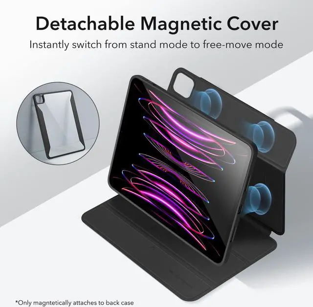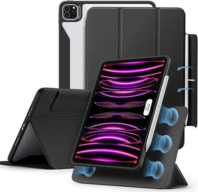 ESR for iPad Pro 12.9 Case, iPad 12.9 Pro Folio Case (2022/2021, 6th/5th Generation) with Pencil Holder, Detachable Magnetic Cover, Vertical Stand, Rebound 360 Series, Black