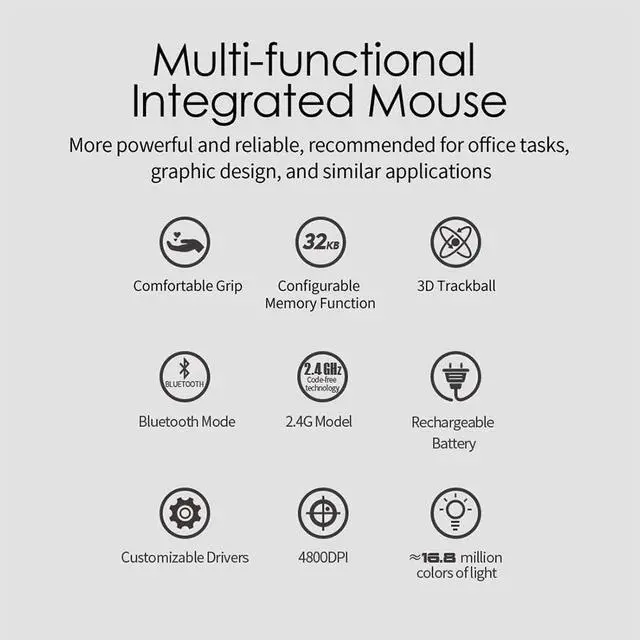 Wireless Connection Support 3 Device - Upgraded Tri-mode wireless mouse, which can connect to 2 devices via BT and 1 device through a 2.4GHz USB Receiver. It allows for seamless switching between 3 devices with just one mouse. Note: You cannot control all three devices simultaneously. 5 Adjustable DPI & 7 Programmable Buttons - 5 DPI levels (800/1200/1600/2400/4800 DPI) allow you to easily adjust the cursor sensitivity for more precise tracking. You can customize each button's function via attached software (please refer to the manual), creating a customized professional mouse.