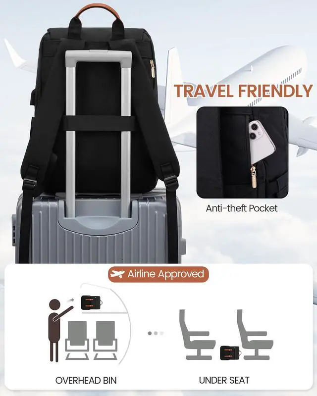 [(Travel-Friendly Luggage Strap & Size)] : The luggage strap allows this travel backpack to attach to luggage/suitcases, making your journey more convenient. Dimension-13.4"L x 6.7"W x 18.1"H(AIRLINE APPROVED).