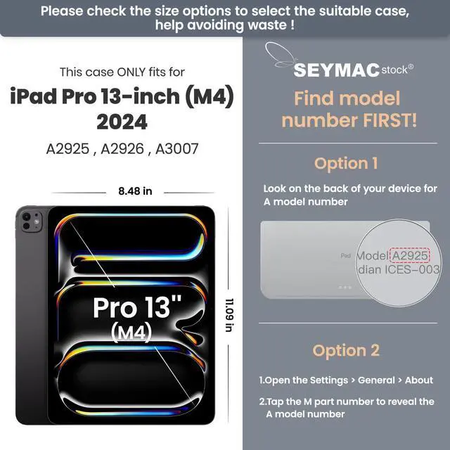 Compatibility: Case for iPad Pro 13 inch M 4 2024 release( Pro 7th Generation 13 inch )Model: A2925 / A2926 / A3007