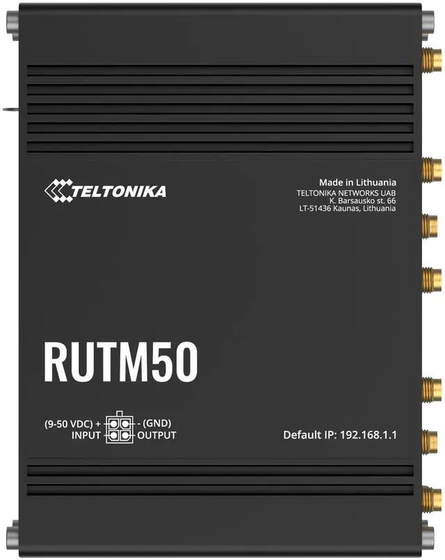 - Included: RUTM50 Router, 18 W USA PSU, 4 x Mobile antennas (swivel, SMA male), 2 x Wi-Fi antennas (magnetic mount, RP-SMA male, 1.5 m cable), 1 x GNSS antenna (adhesive, SMA male, 3 m cable), Ethernet cable ( 1.5 m), and SIM Adapter kit