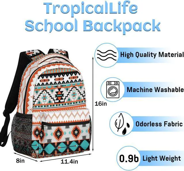 TropicalLife Backpack for School, Aztec Backpack for Boys Girls Adults Teens, Lightweight Montana Western Travel Bookbag for Middle School College High School Students