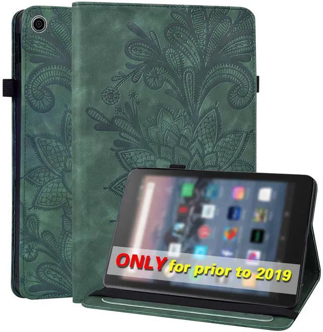 VODEFOX for Kindle Fire HD 10 Case 9th/7th/5th Generation 10.1 Inch (2019/2017/2015),Embossed Lace Flower PU Leather Folio Wallet Shockproof Cover with Pen Holder Elastic Band 10.1" - Green