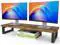 Monitor Stand for 2 MonitorsThis stand is an ideal choice when you need computers to work together. Unique original design,patented products,this dual-monitor stand features a sturdy construction black with a rustic brown wood finish for an added rustic and unique look.