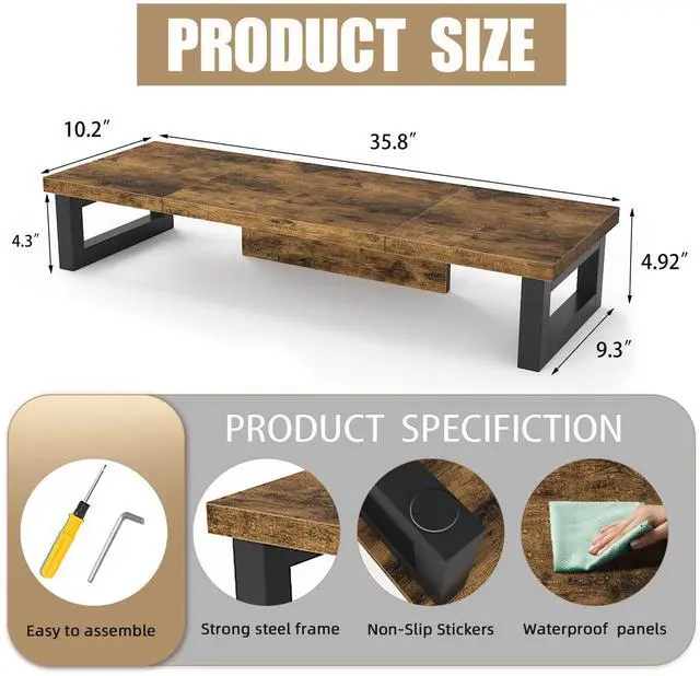 Multifunctional Monitor Riser The monitor stand has powerful storage function of keeping the table clean.It can be used as a monitor stand riser, printer stand, laptop riser, or a TV stand, makeup, animals. Extra storage space underneath organize your office supplies.