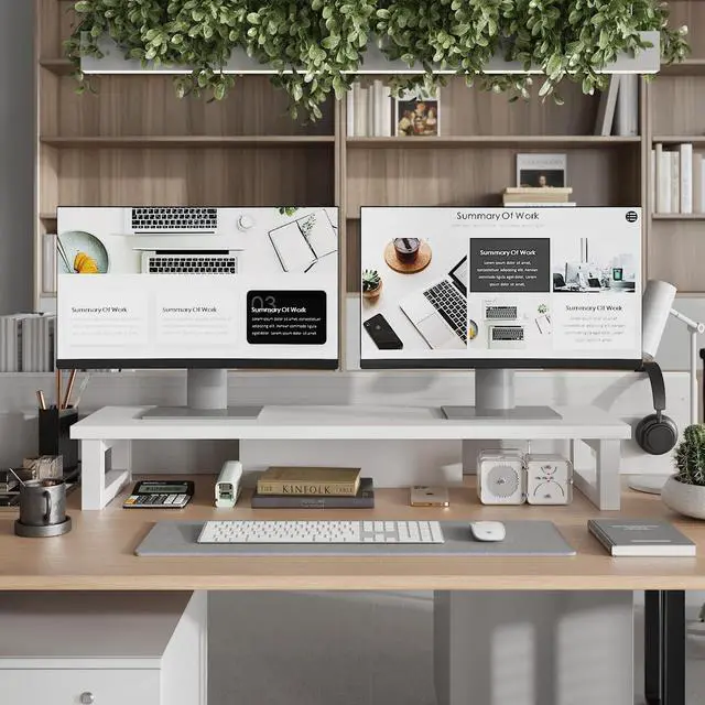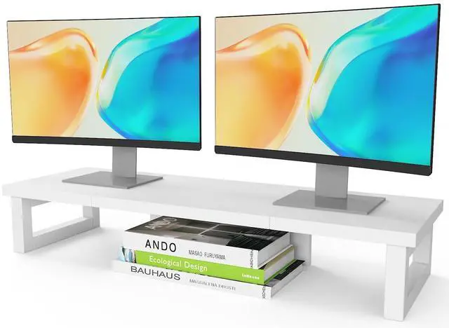 Multifunctional Monitor Riser The monitor stand has powerful storage function of keeping the table clean.It can be used as a monitor stand riser, printer stand, laptop riser, or a TV stand, makeup, animals. Extra storage space underneath organize your office supplies.