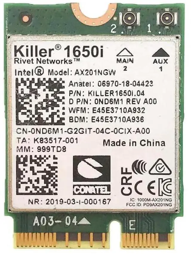 AX1650i is a cutting-edge WiFi 6 Killer Series tri-band adapter, offering unparalleled internet speeds up to 2.4G bps and seamless connectivity. This M. 2 CNVio2 WiFi card is designed to enhance your online experience, whether it's for gaming, streaming, or professional use.