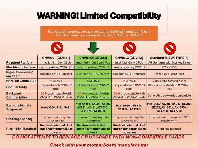 Compatibility: Requires a laptop with an 10th Gen Intel CPU (or some 9th Gen models), Windows 10/11 64-bit OS, and an M. 2 CNVio2 interface. It is not compatible with AMD CPUs or desktop systems.
