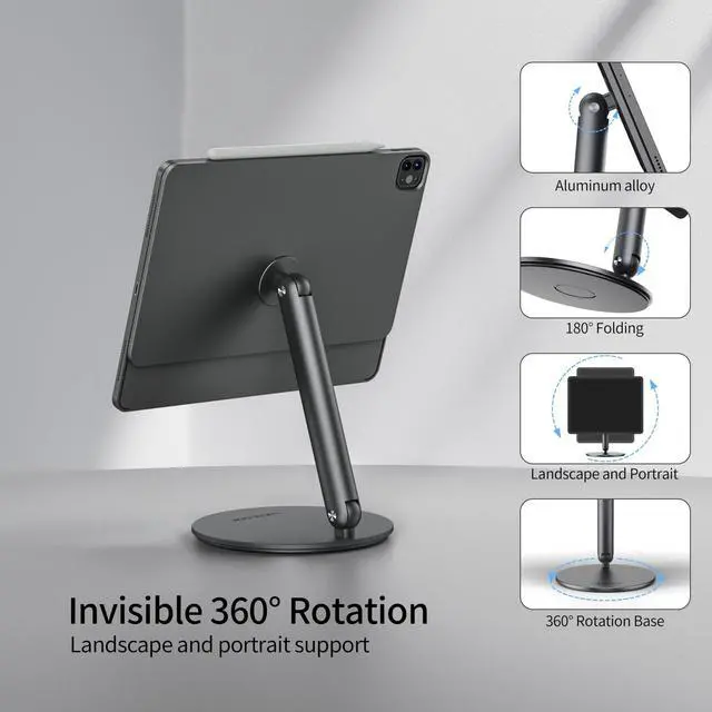 [360-degree Full Adjustment] Featuring a 360-degree adjustable panel and base, this magnetic iPad Pro stand for iPad Pro easily adapts to various usage scenarios. Whether for work, entertainment, or drawing, you can always find the most comfortable angle