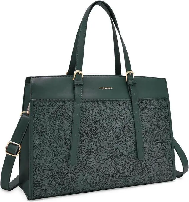Missnine Laptop Bag 15.6 Inch Laptop Tote Bag Briefcase for Women Vegan Leather Crossbody Work Purse 3-Layer Computer Messenger Bags