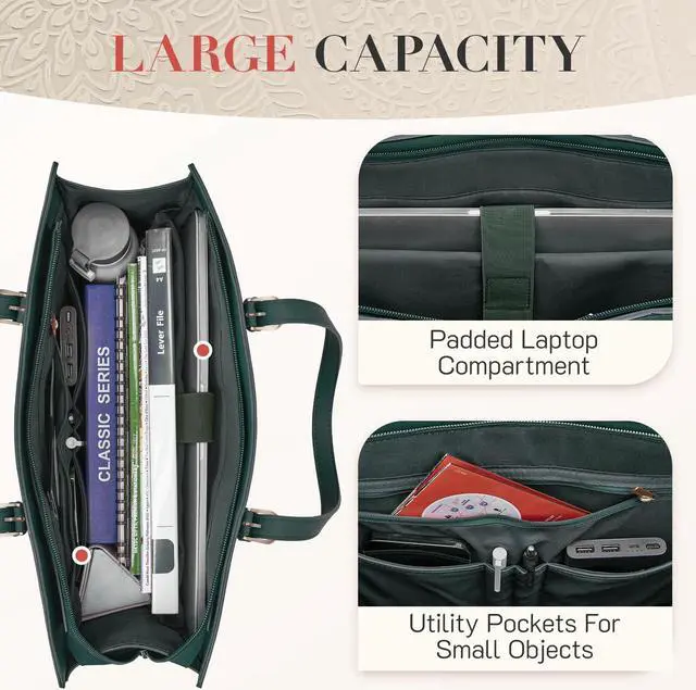 Spacious Laptop Bag - 16.5" L x 12.2" H x 5.1" W, large-capacity main compartment holds 15.6-inch laptop in the separate padded section for better protection, plus binder, books, and documents. And inside patch pockets keep your small items well-organized. The top zipper closure keep items safe.