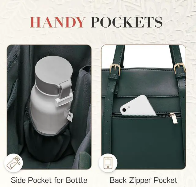 Delicate Designer Work Bag - Featuring gold-tone hardware and embossed floral pattern, adds French elegance to daily outfits. Durable and water-resistant vegan leather and 4 metal studs for long-lasting use.