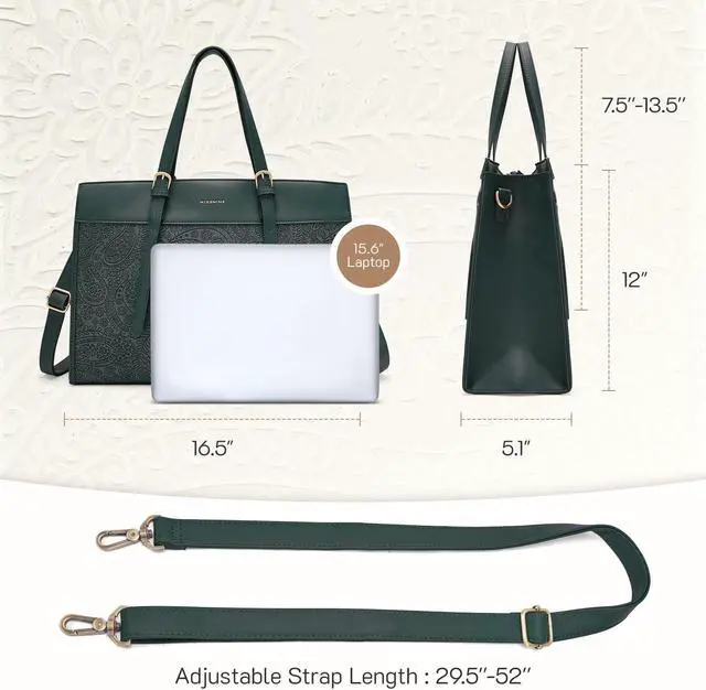 Versatile Tote Bag - Both the short handles and the shoulder strap can be adjusted to the length that fits your needs. Handle drop: 7.5'' -13.5'', shoulder drop: 29.5'' -52''. You have multiple options to carry it as a satchel handbag, crossbody briefcase, or shoulder bag.