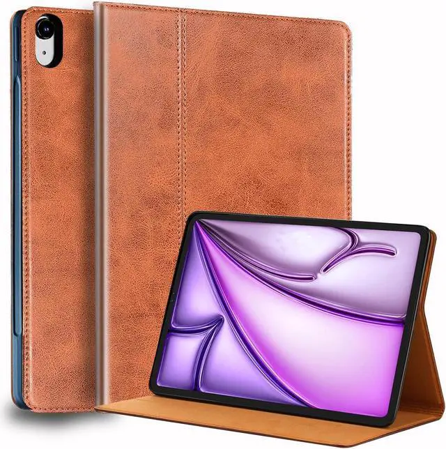 NANRUIL for Ipad Case Air 13-inch M2 2024(Model:A2898/A2899) Genuine Leather Cover Protective Shell,Auto Wake/Sleep.Brown