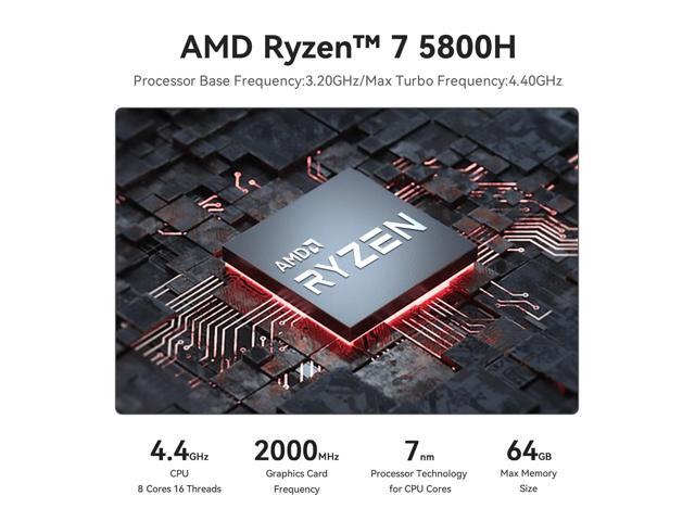 - AMD's New 5000 Generation - Mini computer is powered by AMD Ryzen 7 5800H processor, which is based on TSMC's 7nm process technology, has 8 cores/16 threads, running up to 4.4GHz at 45W TDP. Ryzen 5000 Series is equipped with Zen3 architecture. Booting up the system, large apps, and light games is fast on Beelink 5800H. Perfect for home and office use.