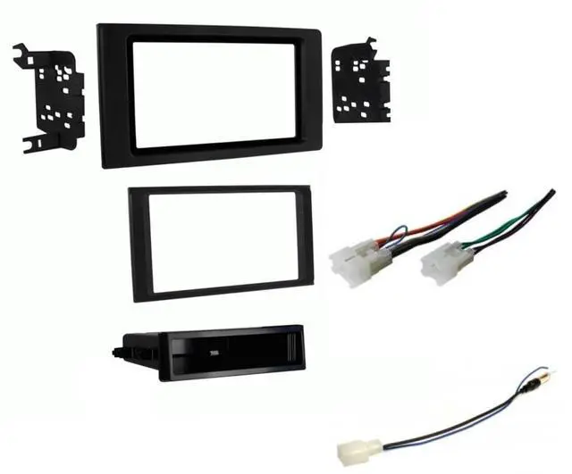 Double or Single Din Radio Kit, Wire Harness, and Antenna Adapter. Use this kit to install an aftermarket Single or Double din size radio to factory location. Black color radio kit.