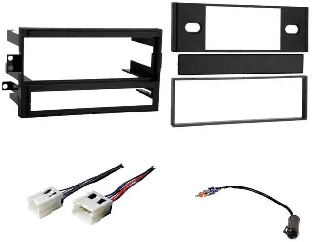 Radio kit, wire harness, and antenna adapter for installing an aftermarket radio. Dash kit works with a Single din radio. Dash kit has a black finish. Will not retain some features like steering audio controls, rear DVD audio, etc.