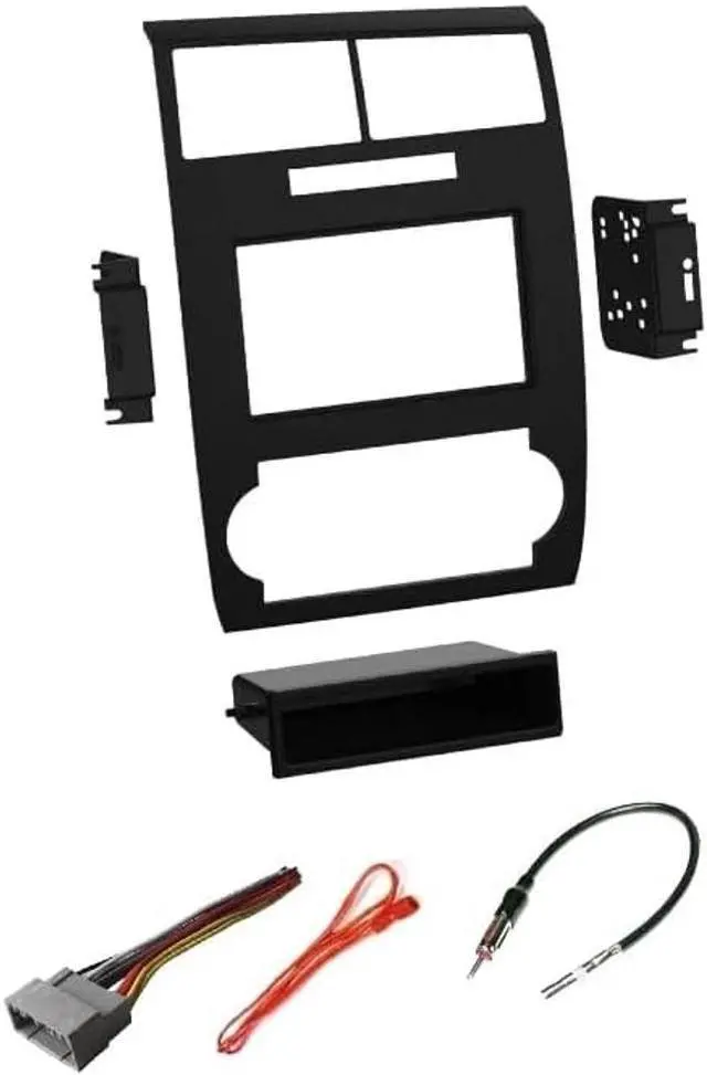 Radio Combo for Aftermarket Radio Installation in Factory Radio Location. Radio Kit, Wire Harness, and Antenna Adapter. Carbon fiber look color radio kit. Not real carbon fiber. Designed specifically for the installation of Single or Double DIN radios. Off brand off size double din radios might not fit properly. We recommend using brand name radios like Kenwood, Alpine, Pioneer, etc which will prevent kit modification.