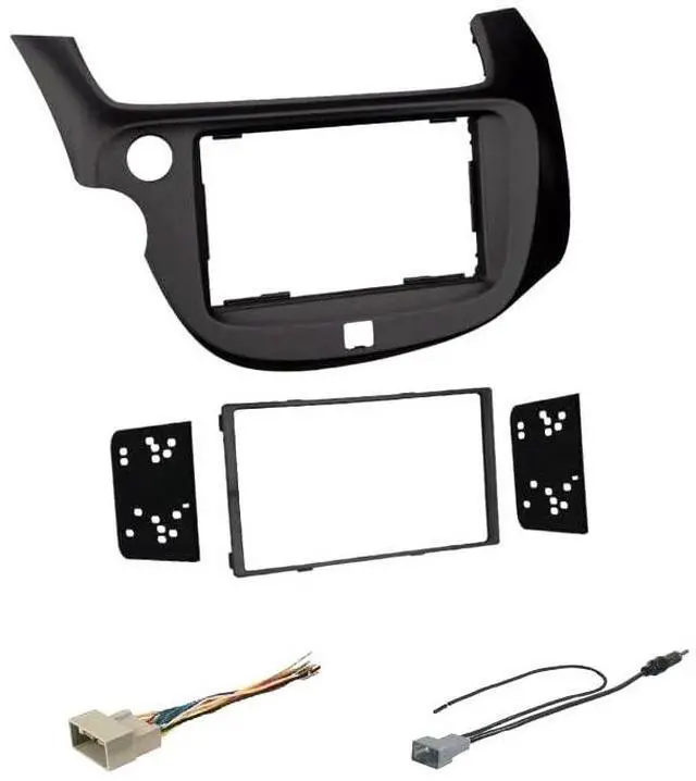Radio Dash kit, wire harness, and antenna adapter for installing an aftermarket radio. Dash kit has a black finish. Dash kit works with a Double Din size radio. Some off brand radios that are off size might not fit properly. Using major popular brands like Kenwood, Alpine, Pioneer, etc is recommended. Will not retain some features like steering audio controls etc.
