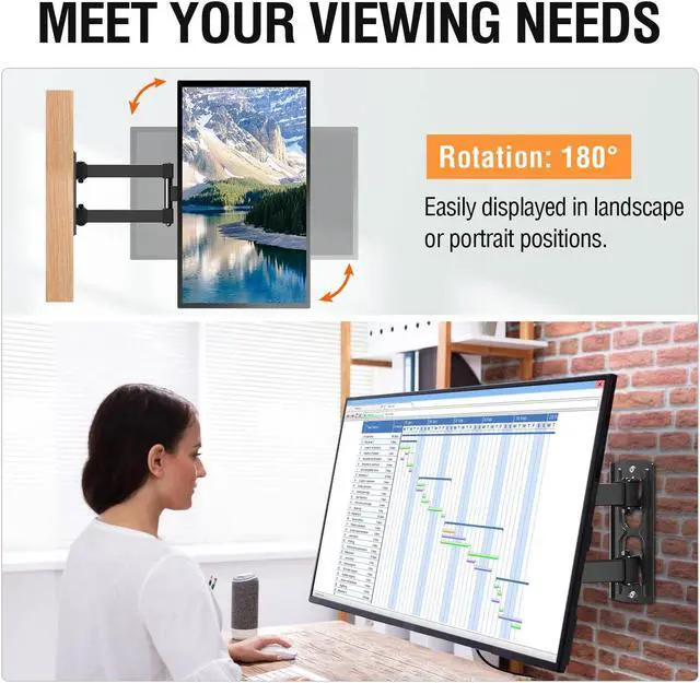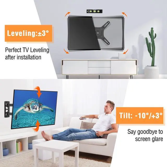 OPTIMISED VIEWING EXPERIENCE - YD1008 TV wall mount with the 180o rotation unique design, which can easily display in landscape or portrait position. Also, this swivel TV mount can swivel TV 180o to cover any angles in your home. YD3004 tilting wall mount close to the wall 1.57""(40mm) for a sleek and tidy appearance, also can tilt your TV 8 degrees easily and smoothly to reduce glare, slide the two TV brackets left and right to get your TV centered easily.