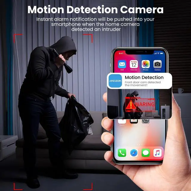 [(Advanced Flam Detection & Instant Notification)] WIth the Powerful data computing capacity in the cloud server, the home surveillance camera can detect the fire and push the notifcaition to the amorom app. Installing the security camera in kitchen, warehouse, store,apartment or anywherea a fire may occur, protect your safe and property all the time.