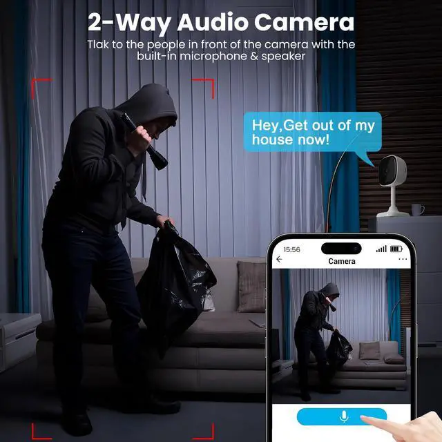 [(Security Camera with AI Detection)] The inside camera for home can capture all the triggers from human body,pet,vehicel,package, and the instant notification will be pushed by security camera with phone app when the smart wifi camera detected the triggers.