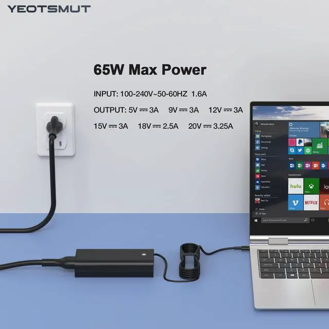 New 65W 45W USB C Charger for Dell Laptop Charger USB C Latitude 5000 5420 5520 5320 Chromebook 3100 3300 3380 3400 3500 XPS 13 9250 9360 9365 9370 Type C Travel Laptop Power Adapter