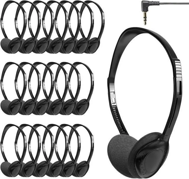 JINWAYBST 30 Pack Headphones Bulk Adjustable Classroom Headphones Library on Ear Headphones Wholesale School Headphones with Wire 3.5 mm Plug for Student, Kids, Adults