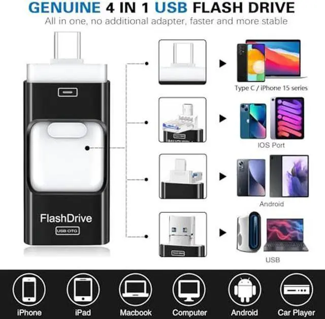 256GB 4 IN 1 PHOTO STICK: High quality aluminum frosted ZARMST usb c flash drive comes in a true 4 IN 1 Design, it has 4 built-in ports (USB-C, iPhone Port, Micro USB and Standard USB A Connector) with no additional adapters to make it more stable.