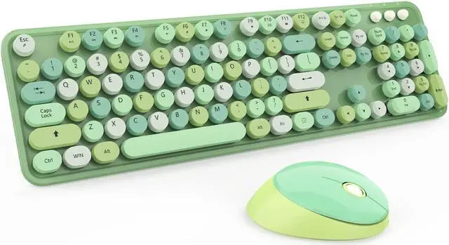 Wireless Keyboard and Mouse Combo, Cute Colorful 104-Key Typewriter Retro Round Keycaps Keyboard for PC Laptop,Windows,Desktop,Perfer for Home and Office Keyboards (Green)