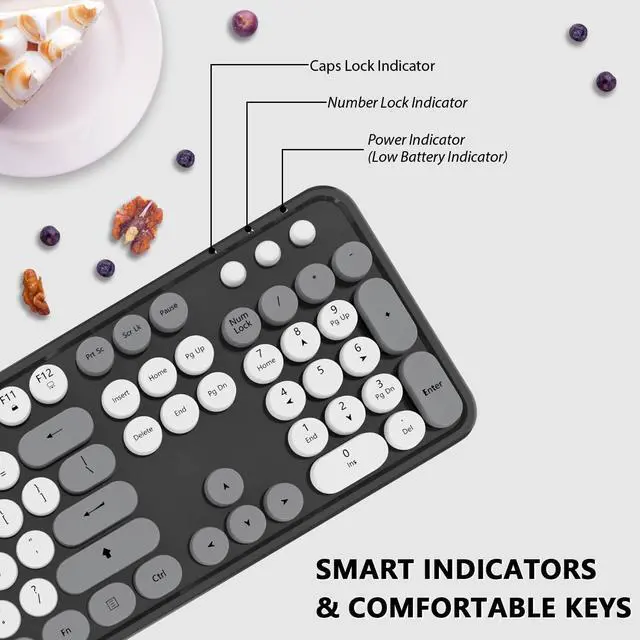 12 Multimedia Hot KeysThis cute wireless keyboard and mouse layout with numeric keypad. 12 multimedia hotkeys combined with FN provide a shortcut to your music, e